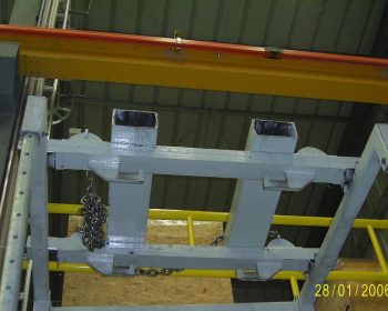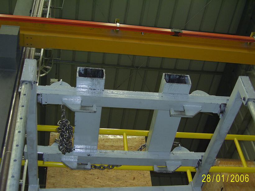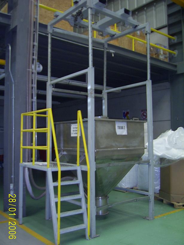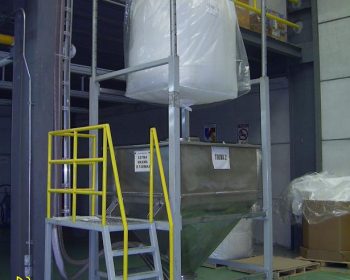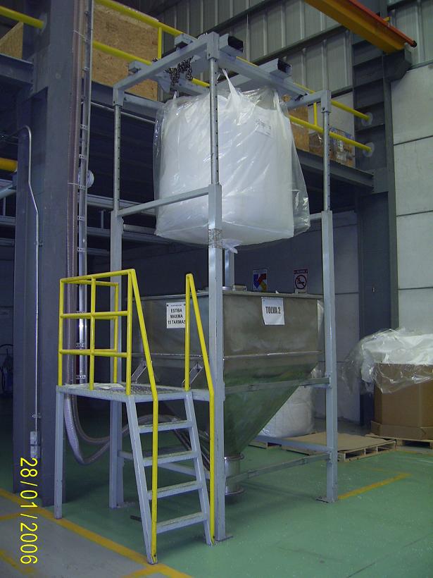 Soporte para izaje de los bolsones de resina, mediante montacargas.