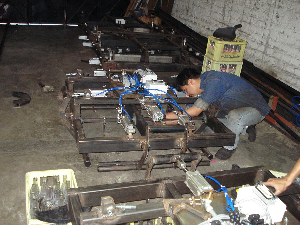 Accesorio para armar las cajas con botellas/vidrio 296cc a la salida de la Linea Krones.