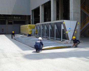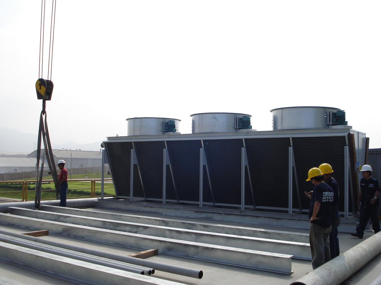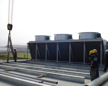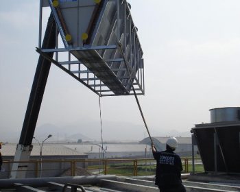 Torre de enfriamiento montada sobre vigas zincadas, posición final.